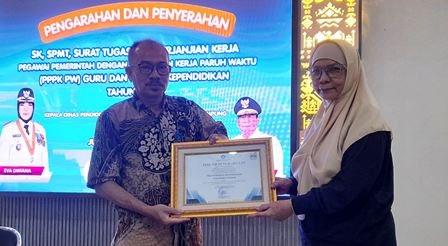 Piagam penghargaan diserahkan langsung oleh Kepala Balai Bahasa Provinsi Lampung, Halimi Hadibrata, kepada Pelaksana Tugas Kepala Disdikbud Bandar Lampung, Eka Afriana, di kantor dinas setempat, Jumat (27/2/2026).